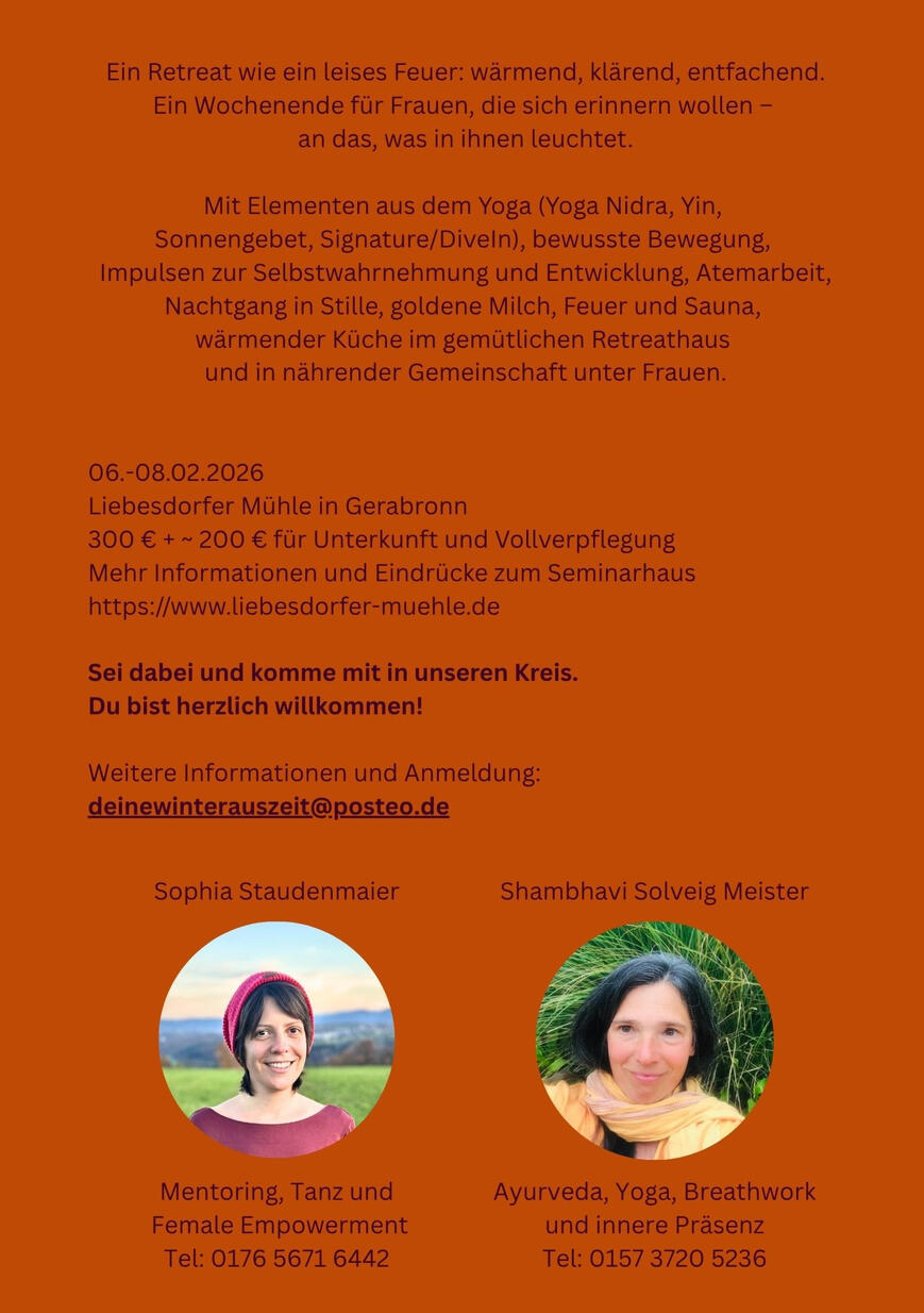 tailored workshops in Ayurveda, wellbeing & embodied awareness.✨ CURRENT INVITATIONSWinterauszeit — February 2025